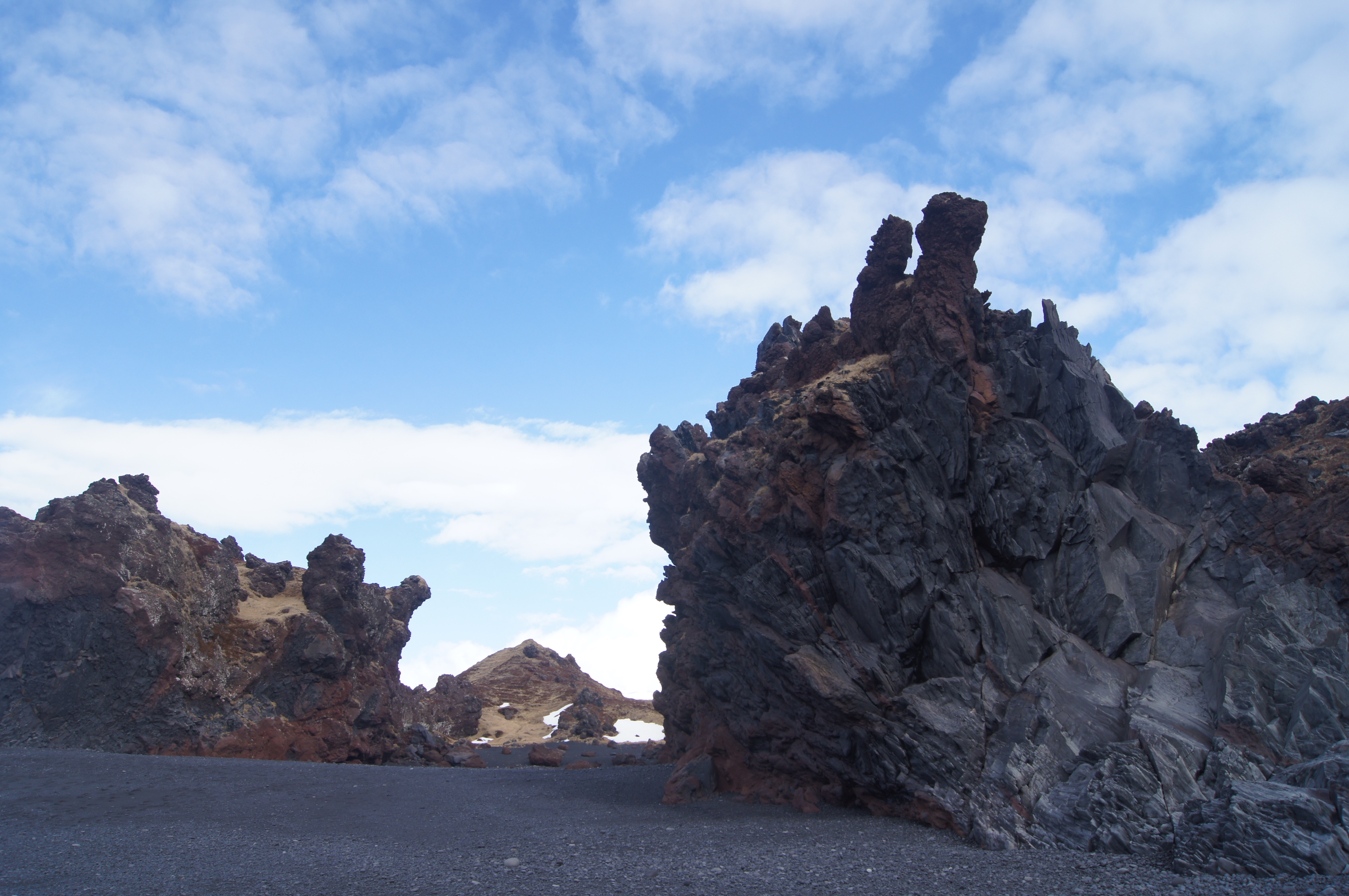 Reykjavik Excursions is a popular bus company that has English-speaking tour guides with an Icelandic sense of humor. One of the most popular tours is the Golden Circle tour, which takes you to the continental divide where Europe and North America meet, the Geysir, and Gullfoss, a truly remarkable waterfall. Another option is a tour along Iceland’s South Shore, which includes a visit to a folk museum, walk on a glacier, and walk behind waterfalls. Because Tom did each of these tours on prior visits to Iceland, we chose a tour to Iceland’s northwest Snaefellsnes Peninsula. We had a walk on a black sand beach, a hike along a crater, and gorgeous vistas of mountains.