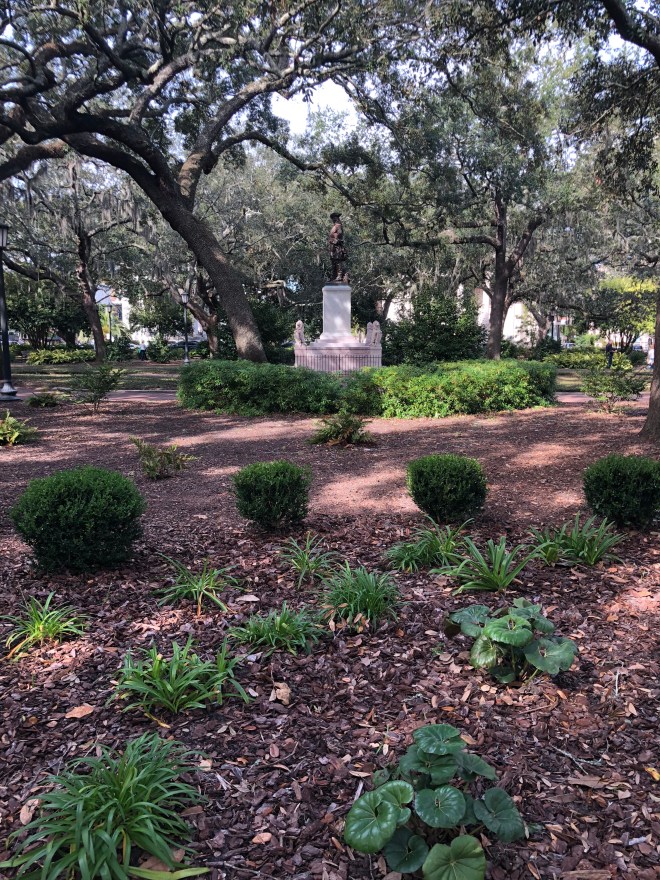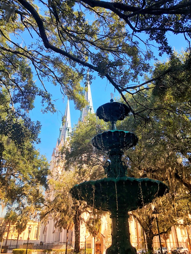 Savannah is a grid. Unmistakably square. Right angle upon right angle. Disturbed only by more right-angled squares and a giant right-angled rectangle of Forsyth Park. The oak trees grow wide here. Sweeping, stretching, limb-after-limb, creating a stitch-like pattern blotting out the sky.