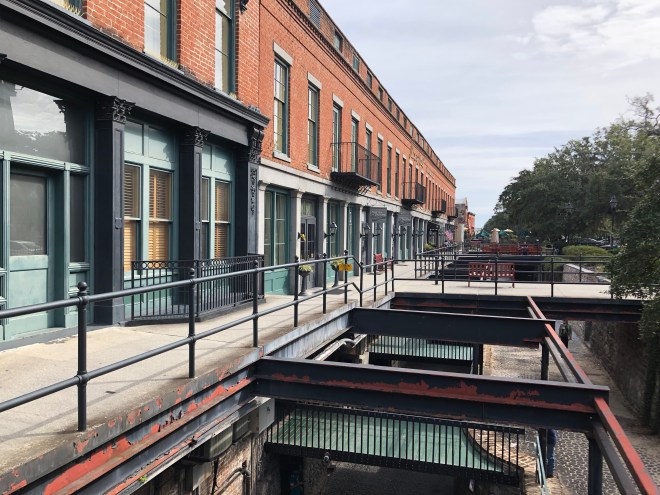 Unlike Charleston, which stretches out into the water, Savannah slowly falls toward the Savannah River well inland by 10 miles, until the bluff falls out from under you and cascades dramatically down to River Street, a reclaimed section of old factories that dominated Savannah’s waterfront.