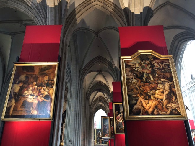 Combining a church with an art museum makes for a very dramatic backdrop. It is also remarkable to see these masterpieces in the setting for which they were intended by the artist. The colors are much more meaningful when set against the dark and gothic/neo-gothic interior of a church.