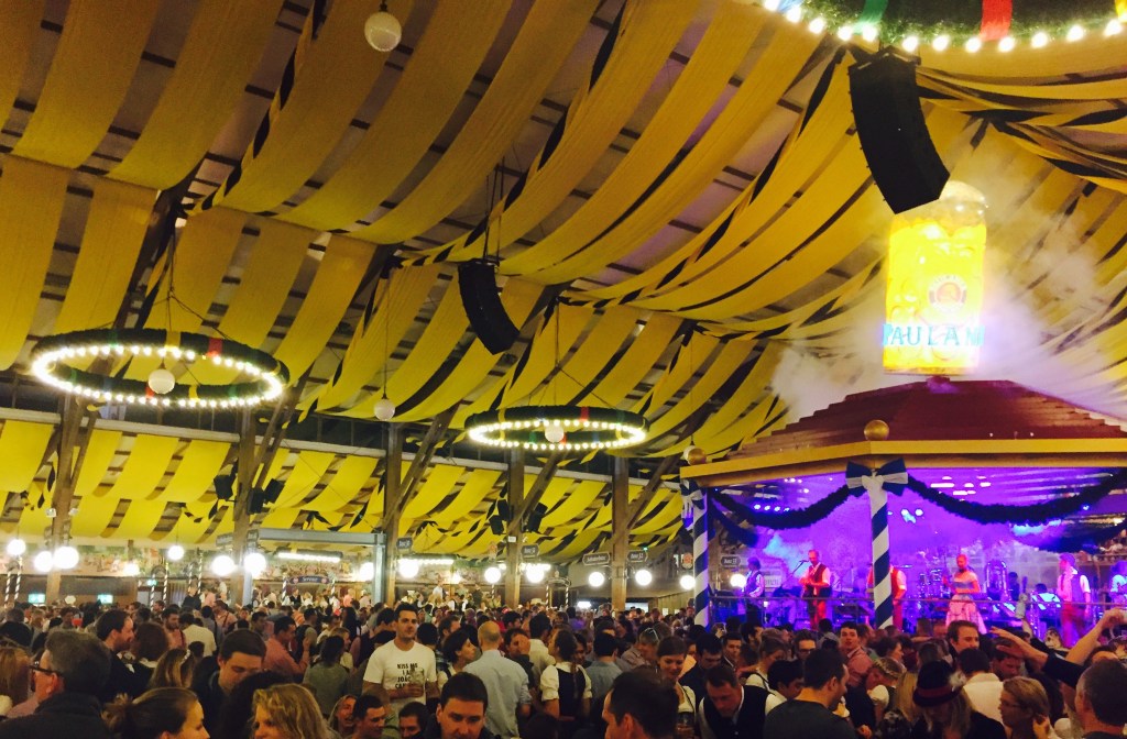 Plan to arrive early or late. As its almost impossible to secure a reservation, unless you are planning an Oktoberfest trip months in advance and know a local, most tables within the major tents will be spoken for by reservation. Don’t be discouraged, the reservation is marked on each of the tables with the surname of the appointment and the time when their reservation begins. This means if a table is marked “Smith 13:00,” that table is free to claim until 1pm. The tents open at 9am, but most queue up to the doors by 7am and then run like mad to grab a table as close to the center as possible. Here again its important to plan — on weekends it is almost impossible to “tent hop” and so we recommend finding a tent and hanging there most of the day. Note that early and late is best, or during the week when the tents are fairly empty and tent-hopping is easy. If queued up on the weekend, dress warm and in layers since standing outside can get cold. We spent our time in the Lowenbrau tent since Lowenbrau is not often available in the US; same goes for the Hacker-Pschorr tents. All are very cool and “must sees.”