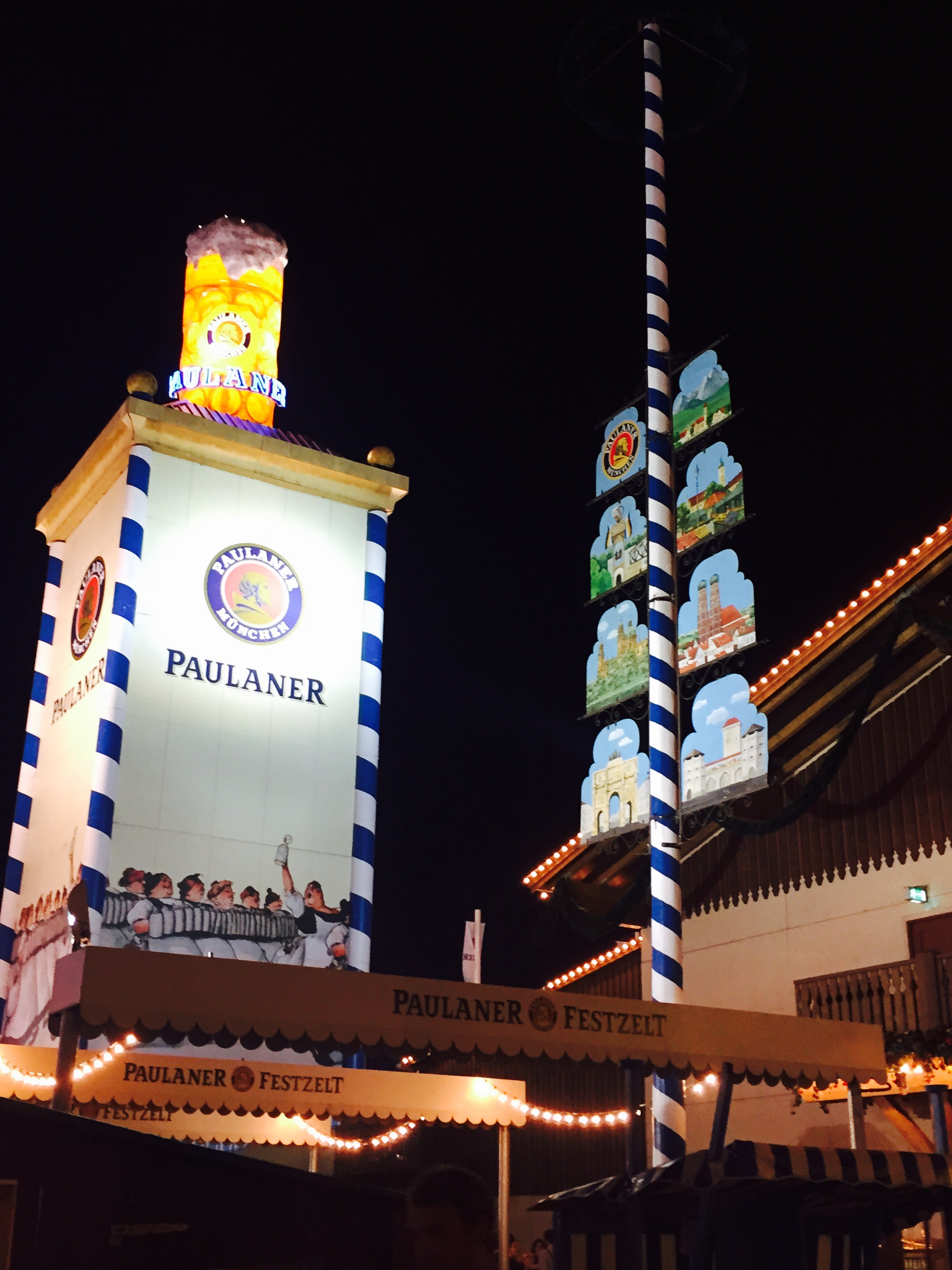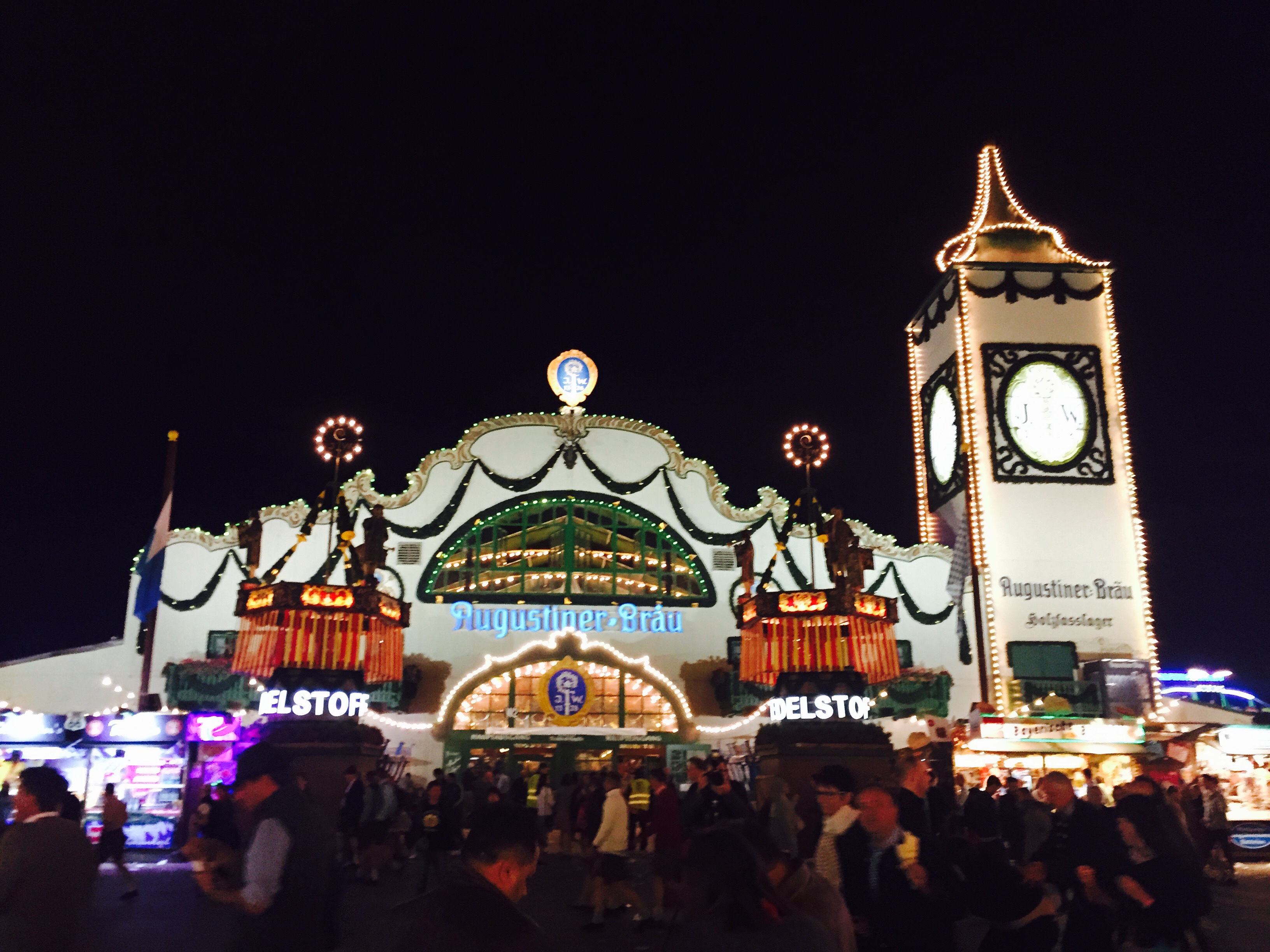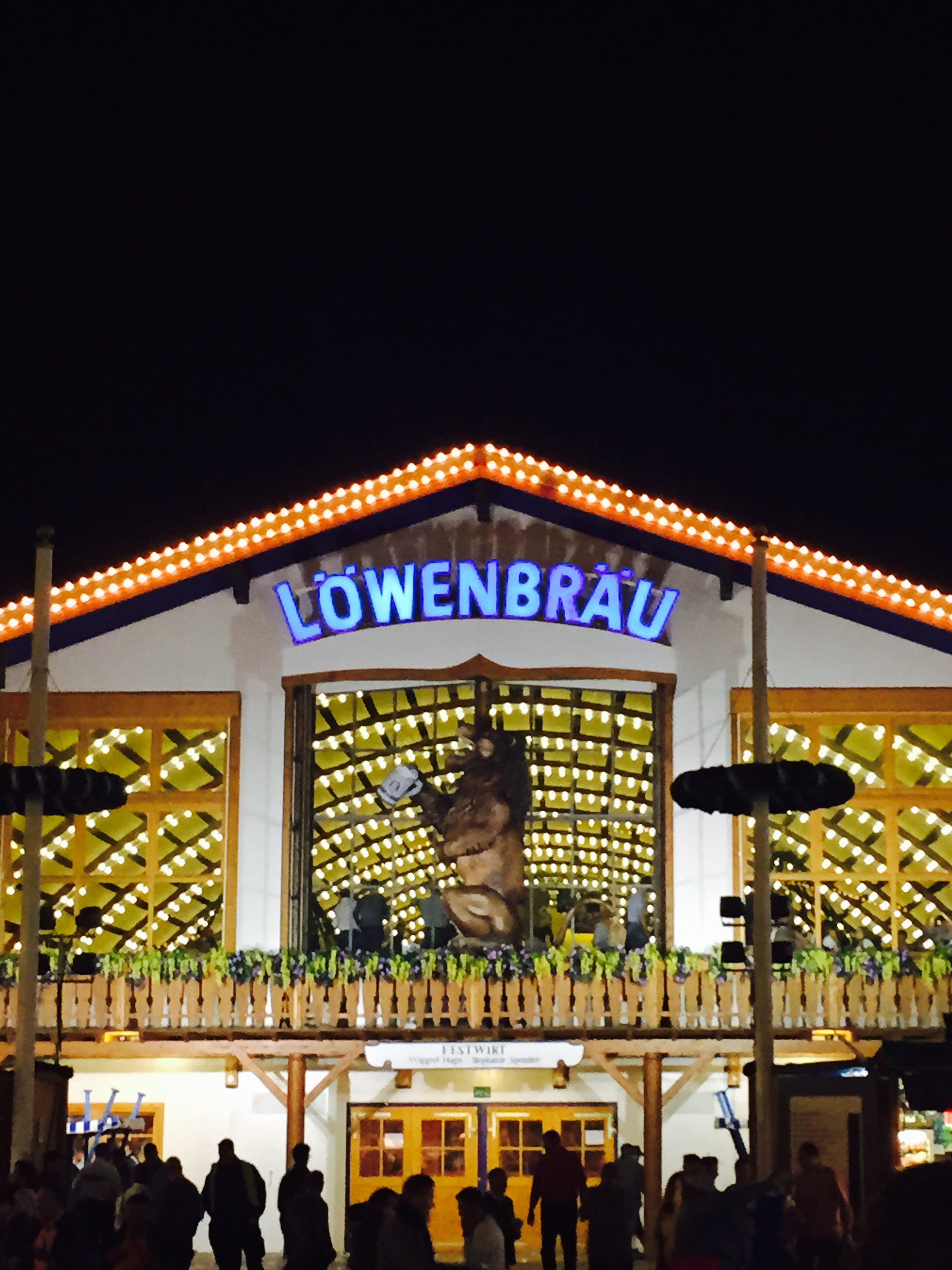Starting off at 9am, we’d recommend the Radler — a mix of beer and lemonade. It goes down easy! As the tents remain open until 11pm with the last beers served at 10:30, we also found that 8pm arrival left plenty of room at the tables. The fantastic part of going at night is seeing all of the tents lit up and the party rocking! There are 14 tents representing 6 breweries in Munich — Augustiner-Brau, Hacker-Pschorr, Lowenbrau, Paulaner, Spaten, Hofbrau Munchen. By purity law, these are the only beers brewed within Munich’s city limits. Note that by later at night, most in the tents are not seated, they are dancing on the benches!