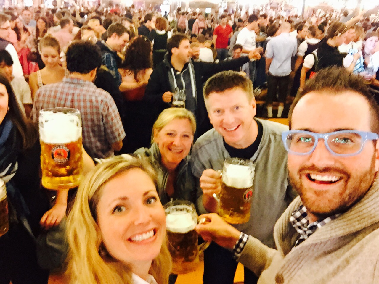 Go with friends. We had a group of friends and Emily’s brother and sister-in-law all converge on Munich for the last weekend of September. Going with a larger group made our Oktoberfest absolutely wonderful because there were enough of us to fill an entire table. That said, this requires additional planning since most tables will have reservations booked months in advance and held primarily by locals.