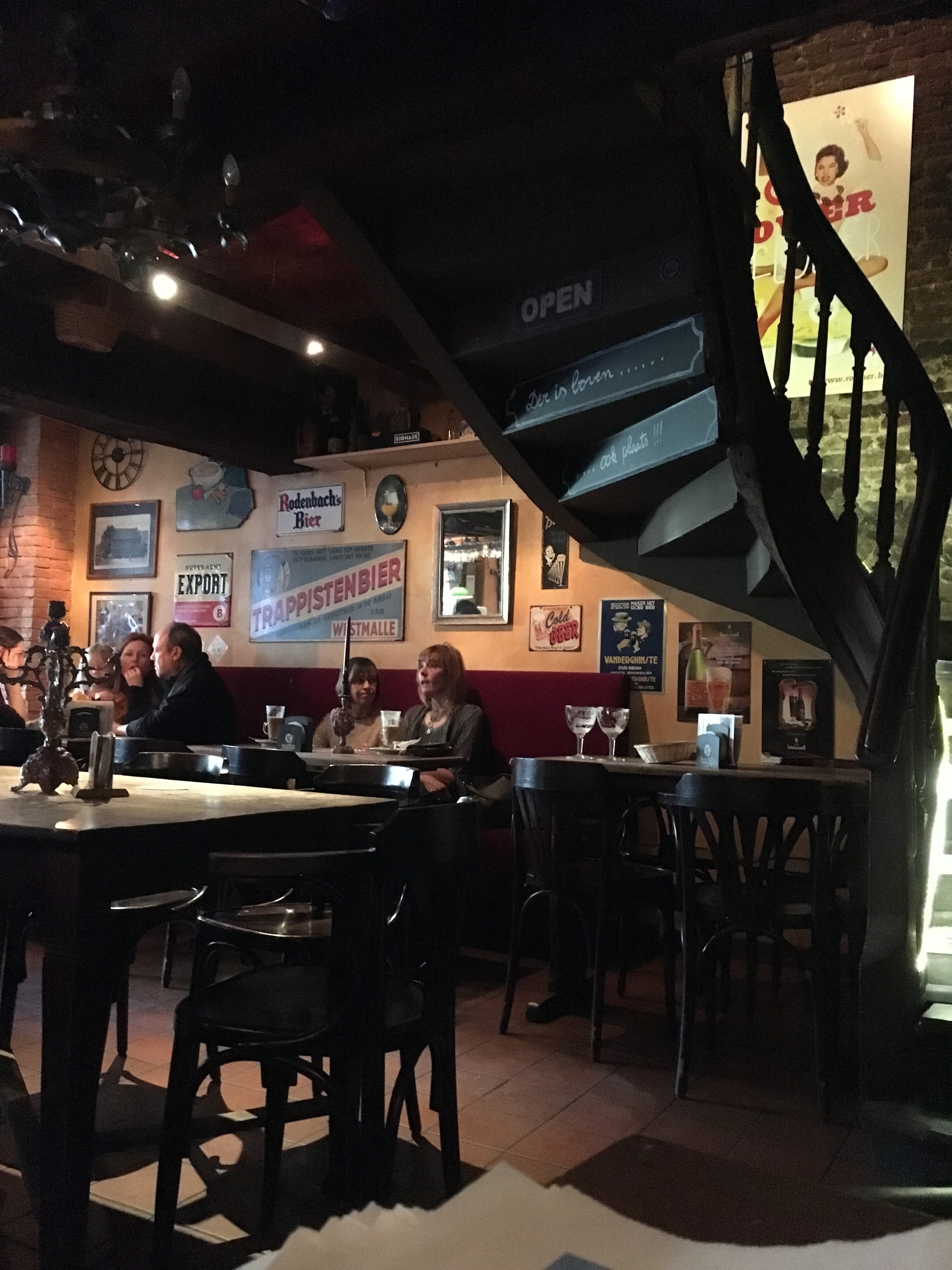 An afternoon delight is to pop into the pub. Here, at Gentse Gruut, the pub can be cozy with its wax dripping candles or impressive with its back patio river views of gabled buildings and boat cruises. This is a must stop for us. We grab a pint, play a game, and talk about our favorite sights of the day.