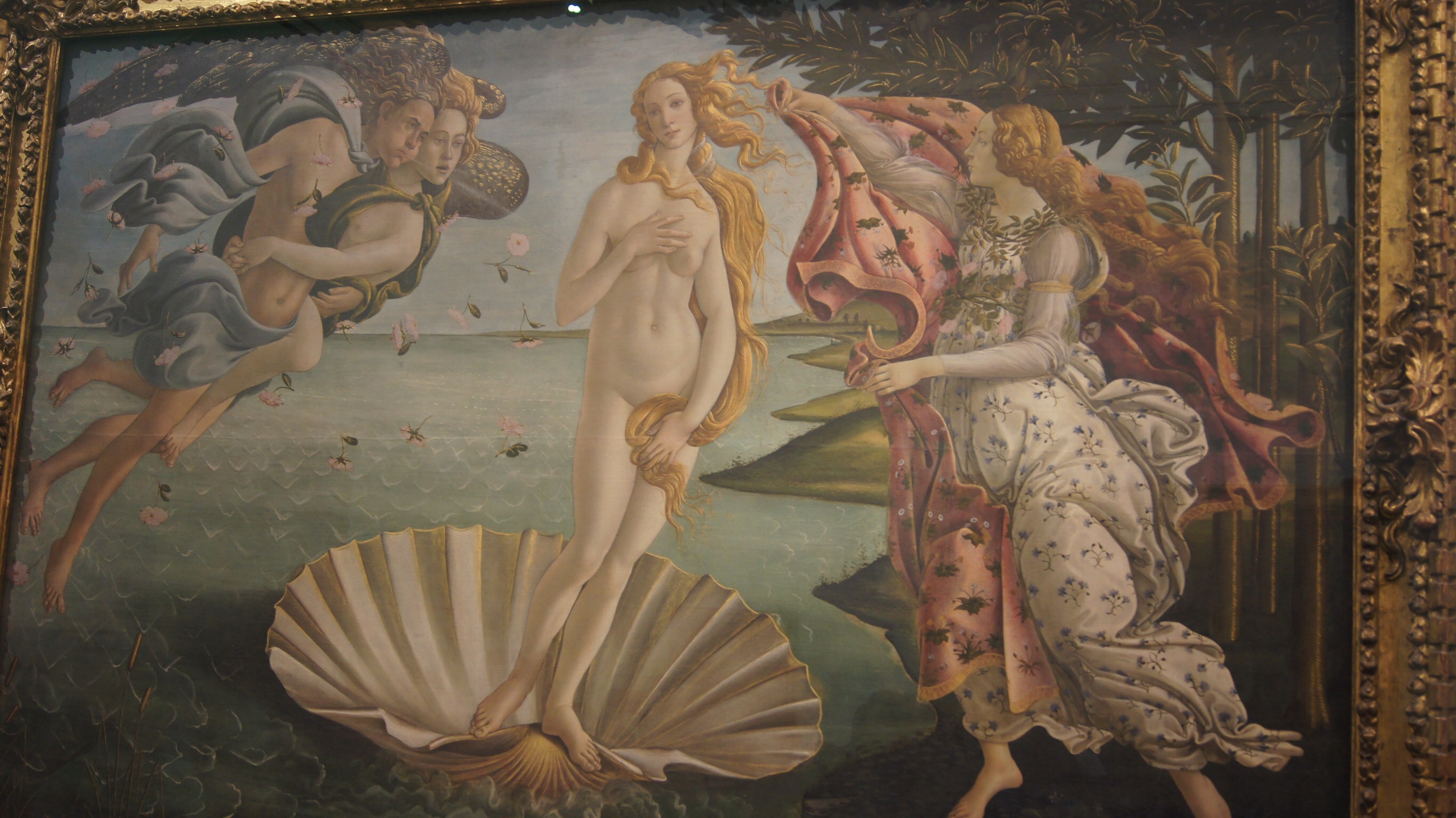 Finally, we ended our day exploring the single best collection of Italian paintings anywhere in the world — the Uffizi Gallery. In a U-shape around an inner courtyard, the Uffizi includes so many great works of art from Leonardo, to Titian, to Caravaggio. The focus of our visit, not surprisingly, was the roomful of Botticellis and the absolutely stunning Birth of Venus and Spring.