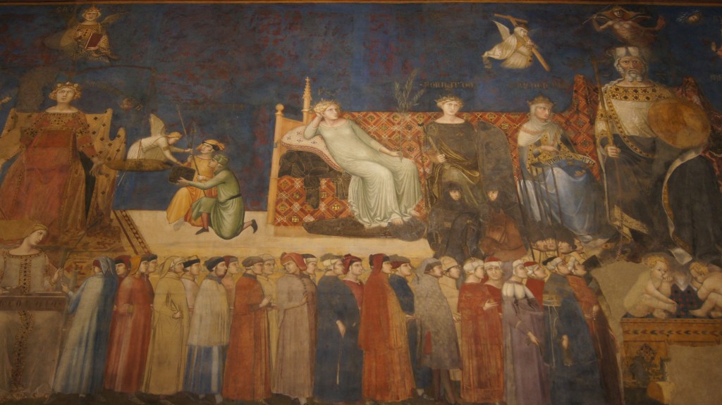 One of the more interesting frescoes is Effects of Good and Bad Government by Ambrogio Lorenzetti.