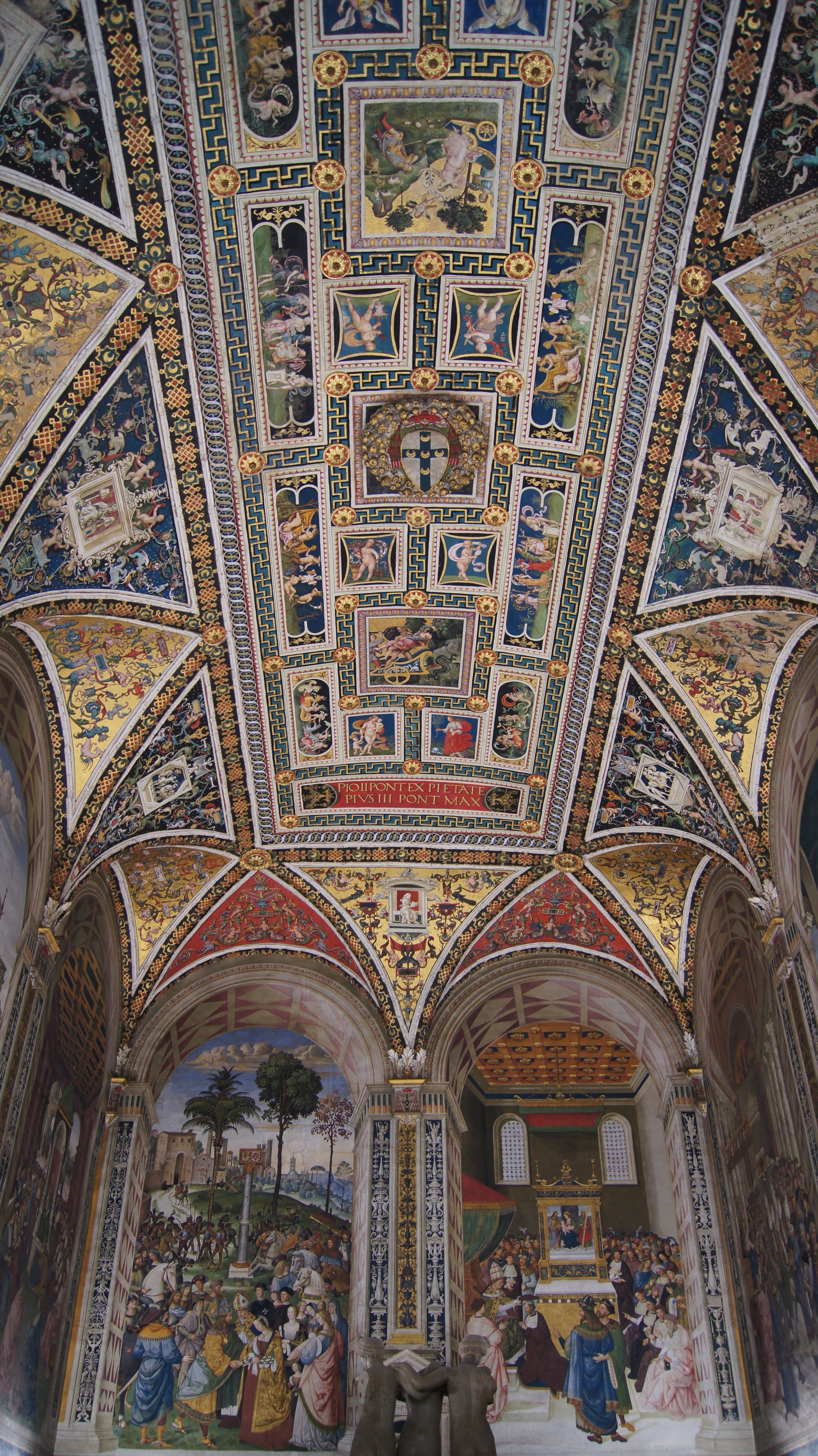 Third is the Piccolomini Library. The library features frescoes from the 1400s, which would be impressive in and of itself, but the fact that the frescoes retained their vibrant jaw-dropping colors without any restoration is amazing. The library is named for Siena’s hometown guy Aeneas Piccolomini who became Pope Pius II. Opposite the Duomo is Santa Maria della Scala, which was used as a hospital and pilgrim lodging. Today it’s a gorgeous museum of artifacts from the period with cellars filled with neat exhibits.