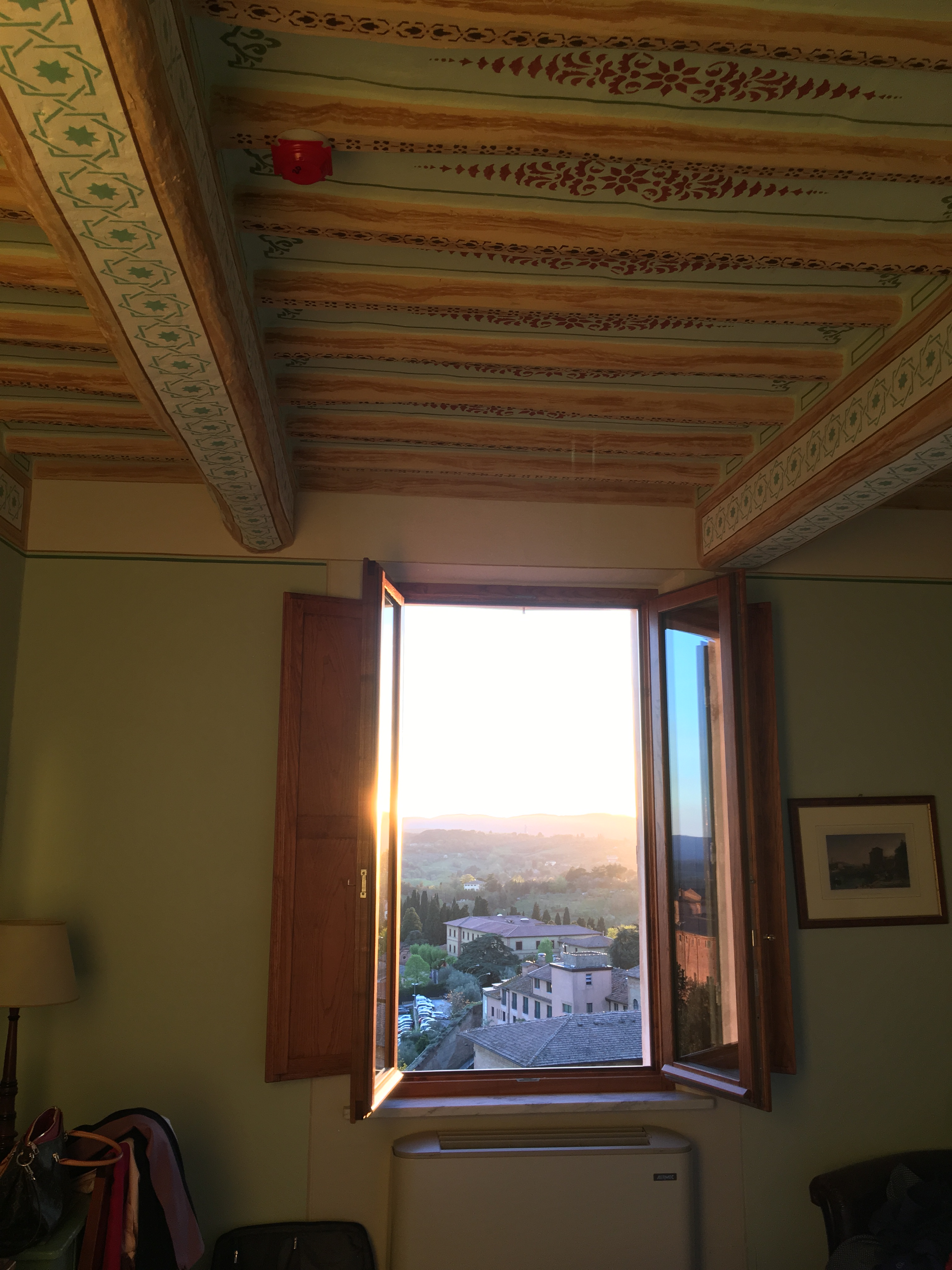 Staying in Siena. We chose the Pensione Palazzo Ravizza, which is the tippy top of elegance. Situated on top of the city wall, we enjoyed an overlook of the surrounding countryside from both our well-appointed room and the garden. There is nothing like having a glass of Chianti while enjoying that view.