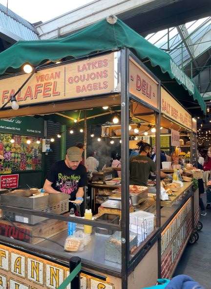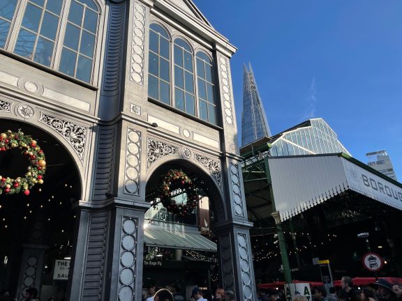 Saturday. It’s late – all three of us slept in. While yesterday was crisp and cold, we had bright blue sky. Today features a proper London fog. The three of us venture out for a leisurely walk along the south bank of the Thames. Gliding past Southbank Centre, alongside the Tate Modern, past the Globe Theatre, we listen to buskers in the tunnels under the bridges. Our destination is Borough Market. This has been a favorite destination of ours for years. The food stalls are amazing. The stores are fun. The fog has lifted and the three of us enjoy macaroni and cheese from Bath, salted beef from a proper Jewish deli, and an extra special pulled pork with apple slaw on ciabatta.