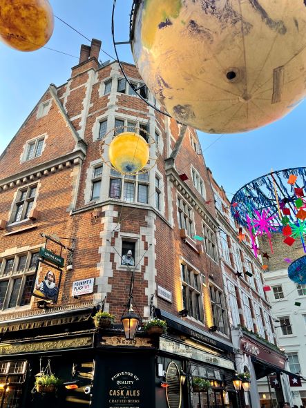 Friday. After arriving in London and getting settled into our hotel, we ventured out for a bit of fresh air. The Marriott County Hall is located on the south bank of the Thames on Westminster Bridge across from the Houses of Parliament. It’s Remembrance Day and everyone is wearing a poppy. We meander through Whitechapel to Trafalgar Square, where they are setting up the Christmas market. From there, we jog through St. Martin’s in the Fields and up to The Salisbury where we grab our first proper pint and meet some friends. After a few drinks, we leave and walk to Seven Dials Market. The crowd is young and loud, but this is the spot to be for a market snack. Friday night requires a pub dinner; just a block off of Seven Dials at Two Brewers.