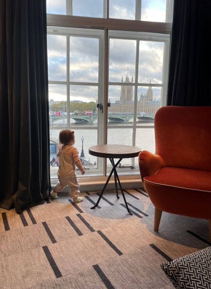 - Upgrade to a suite. This was a game-changer for us because we could get takeaway after the baby went to sleep and watched movies or played board games in the living room area. We also had concierge lounge access at Marriott County Hall with our Marriott status so we were able to have wine or beer without leaving the hotel.