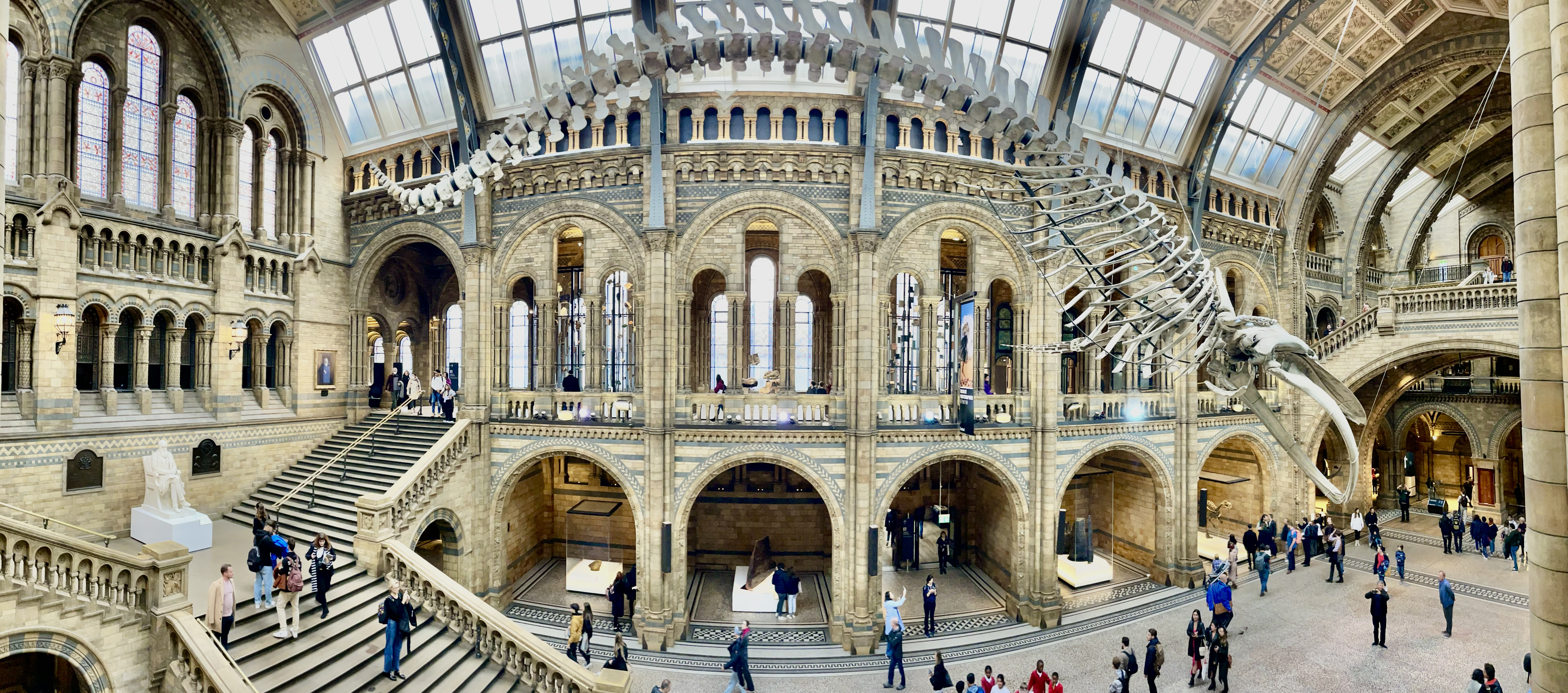 Monday. It’s our last day here and one of the best museums in London is the Natural History Museum, just a few short tube stops away from our hotel. The majesty of the museum is apparent in the main hall with its large whale and Harry Potter-esque flying buttresses and walkways. There are fantastic rooms to explore, especially the dynamic dinosaur room, which intrigues even the youngest of kids. An hour or so in the museum results in nap time so we head to Harrod’s nearby to stimulate the British economy. It’s a rather short and enjoyable walk from Kensington through Green Park and across Buckingham Palace back to Westminster. As we walk, we see big red and yellow leaves falling from the trees with blue skies peeking out from the soft London fog as the bells ring out from Westminster Abbey before Big Ben sounds 1pm.