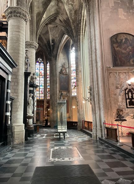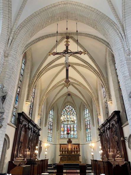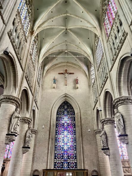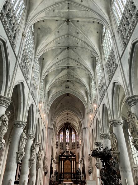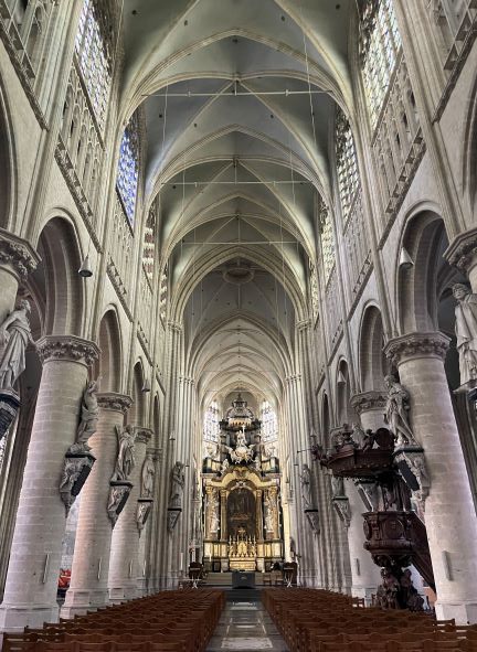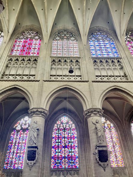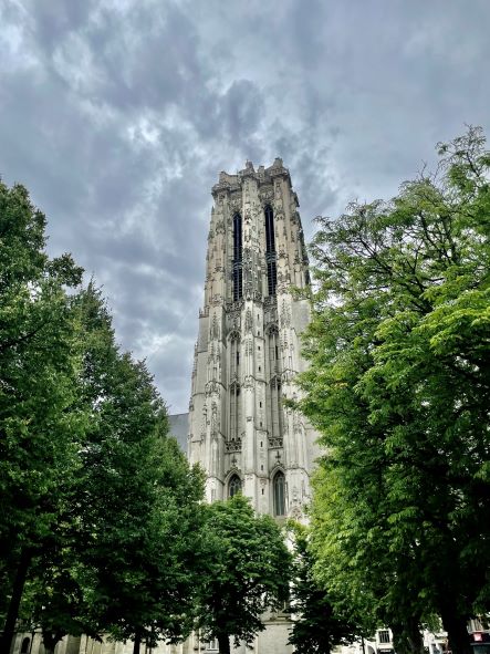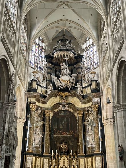 St. Rumbold’s Cathedral. This is part of why we came to Mechelen. St Rumbold’s was built in the thirteenth century and is impressively tall. The church survived the religious wars in the sixteenth century and massive bombing damage in the Second World War. The inside of the cathedral is stunning and the high altar, dating from 1665, is an absolute gem. While we are here, we find out that Mechelen boasts a number of impressive churches and UNESCO world heritage sites featured in a scavenger-hunt style pamphlet for touring. Because all of the churches are free, hitting all of these sites quickly became an important goal before we left Mechelen.